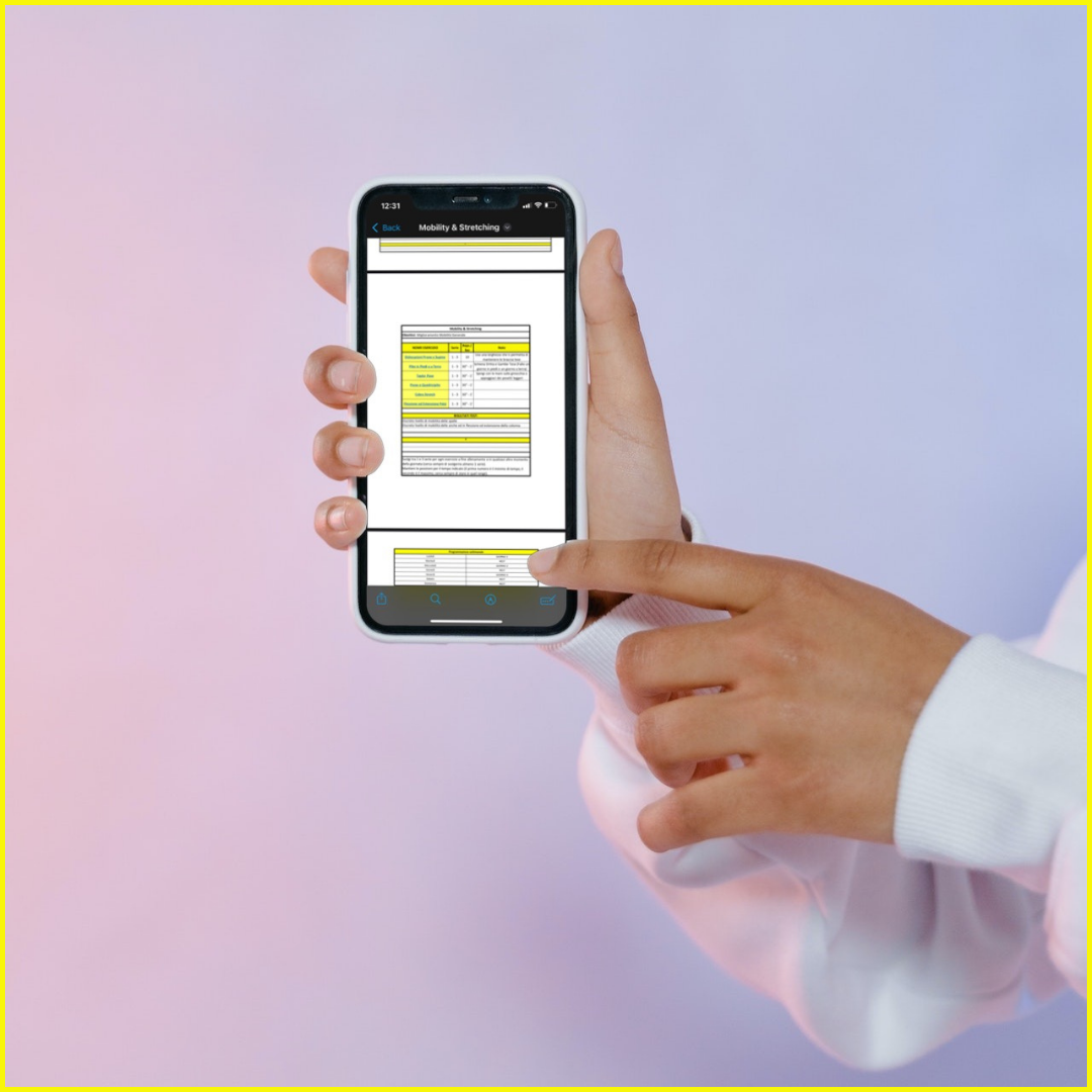 Tutte le programmazioni ed i video tutorial degli esercizi saranno sempre a tua completa disposizione. Anche una volta terminato il percorso.